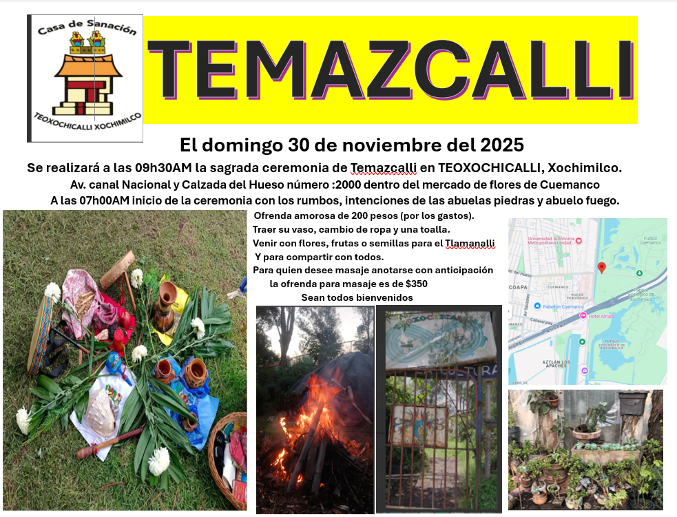 Temazcalli en Xochimilco del domingo 30 de noviembre del 2025